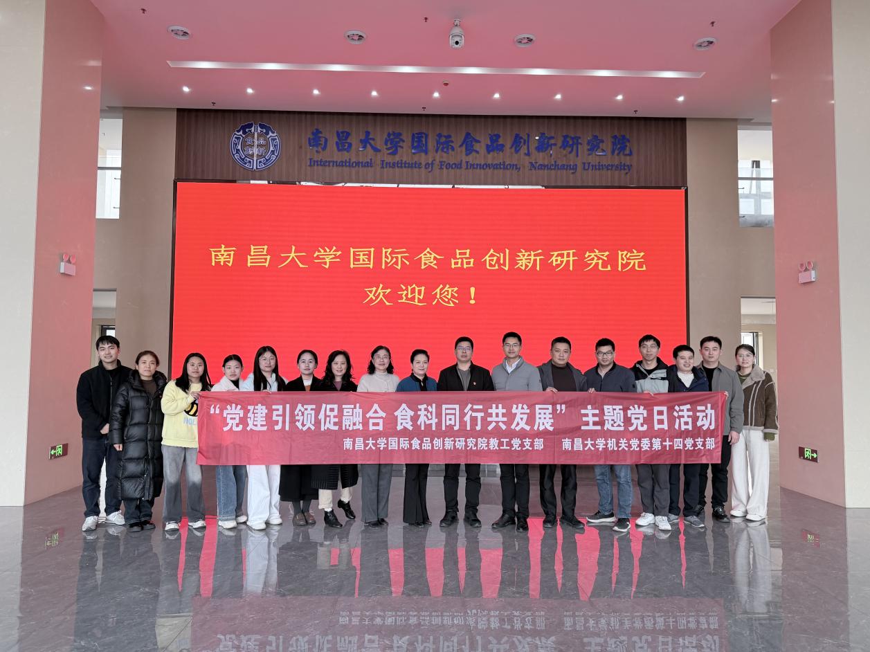 2026年1月16日下午,南昌大学机关党工委第十四党支部书记、南昌大学科技处副处长尹君怡一行来院联合开展“党建引领促融合 食科同行共发展”主题党日活动。南昌大学食品学院党委书记温平威,南昌大学食品学院党委委员、国际食品创新研究院常务副院长陈军,国际食品创新研究院副院长仲维嘉、黄小林,食品学院国际食品创新研究院教工党支部书记叶江平等参加了活动。